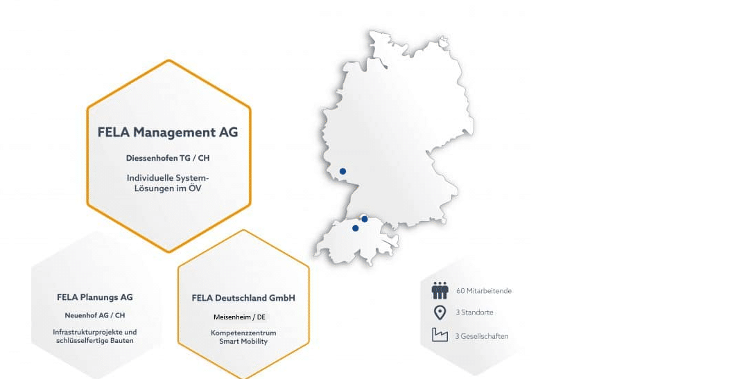 Für unsere Kunden erstellen wir skalierte und vernetzte, individuelle Lösungen für Fahrgastinformation, Betriebsleitstelle, Ticketing und elektronische Bezahlsysteme für Bus und Bahn. Die Hard- und Software-Lösungen entwickeln wir selbst, Betrieb und Integration inklusive. Dies geschieht am Standort Diessenhofen, dem FELA Hauptsitz und in Meisenheim (DE), der Tochtergesellschaft.